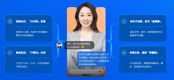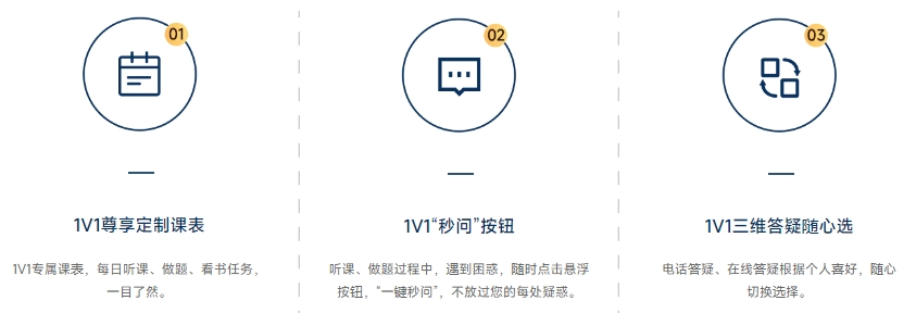 3種1V1答疑方式,全方位掃清疑惑。微信1V1答疑,與私教1V1交流的過程,幫您保持深度思考;在線答疑,1小時內(nèi)回復(fù);預(yù)約電話答疑,每周可預(yù)約7次,每次半小時。