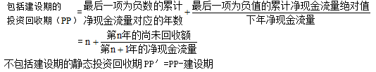 包括建設(shè)期的投資回收期(PP),不包括建設(shè)期的投資回收期(PP′)