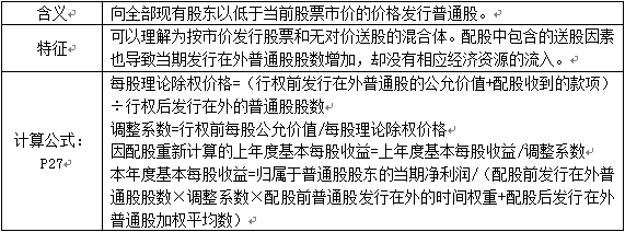 特征:不改變企業(yè)資源,但將引起當(dāng)期發(fā)行在外普通股股數(shù)發(fā)生變動,需重新計算所有列報期間的股份數(shù),并據(jù)以調(diào)整每股收益。