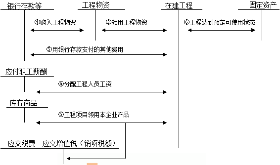 自營工程的會計處理如下圖所示: