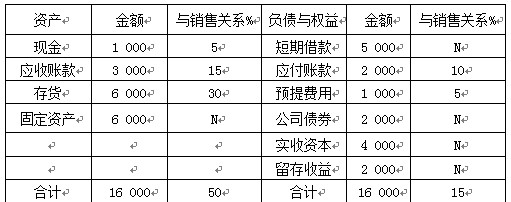 在表3-1中,N表示不變動(dòng),是指該項(xiàng)目不隨銷售額的變化而變化。