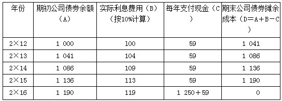 某公司于2×12年1月1日折價(jià)發(fā)行了5年期面值為1 250萬元公司債券,發(fā)行價(jià)格為1 000萬元,票面利率為4.72%,按年付息,到期一次還本(交易費(fèi)用略)。