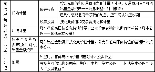 可供出售金融資產(chǎn)的會(huì)計(jì)處理見下表。