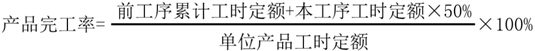 采用約當(dāng)產(chǎn)量比例法,確定期末在產(chǎn)品的完工程度是重要的一環(huán),一般是根據(jù)月末在產(chǎn)品的數(shù)量,用技術(shù)測(cè)定或其他方法來計(jì)算在產(chǎn)品的完工程度。如果企業(yè)具備較健全的產(chǎn)品工時(shí)定額資料,也可以按每道工序累計(jì)單位工時(shí)定額計(jì)算該工序的在產(chǎn)品完工程度,計(jì)算公式為:
