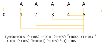 計(jì)算公式推導(dǎo):A=100、i=10%、n=5