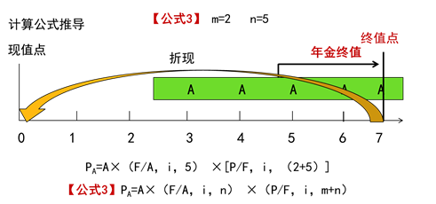 公式3:PA=A×(F/A,i,n)×(P/F,i,m+n)