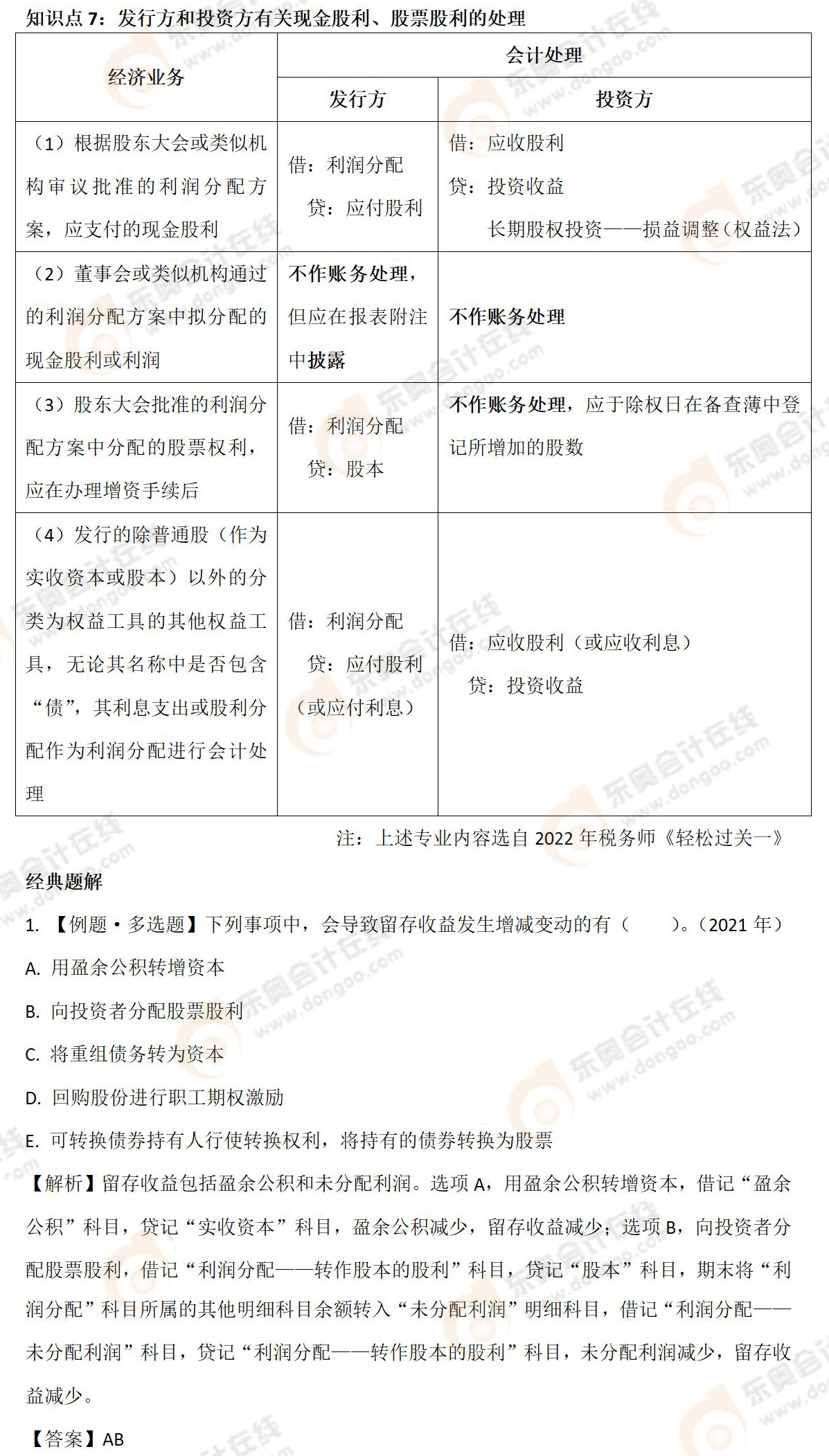 知識點:發(fā)行方和投資方有關(guān)現(xiàn)金股利、股票股利的處理