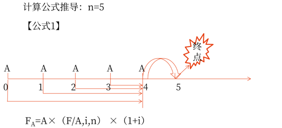 公式1:FA=A×(F/A,i,n)×(1+i)