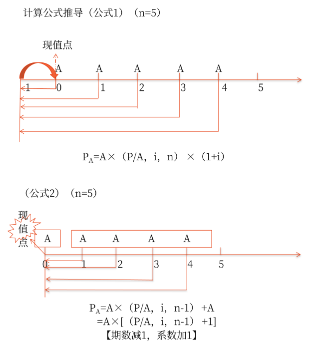 公式2:PA=A×[(P/A,i,n-1)+1](期數(shù)減1,系數(shù)加1)