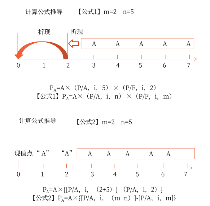 公式1:PA=A×(P/A,i,n)×(P/F,i,m)
