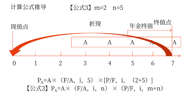公式3:PA=A×(F/A,i,n)×(P/F,i,m+n)