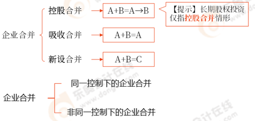 按合并完成后的被合并方法人主體是否喪失,企業(yè)合并分為控股合并、吸收合并和新設(shè)合并。本部分只涉及控股合并。