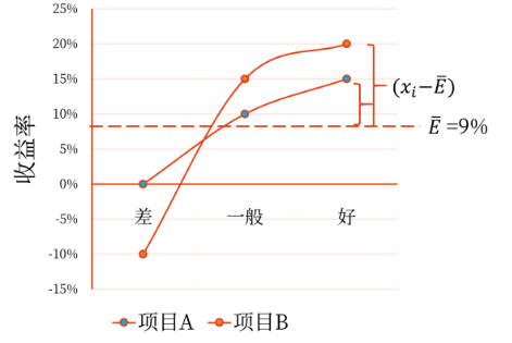 資產(chǎn)的風(fēng)險是資產(chǎn)收益率的不確定性,其大小可用資產(chǎn)收益率的離散程度來衡量。離散程度是指資產(chǎn)收益率的各種可能結(jié)果與預(yù)期收益率的偏差。