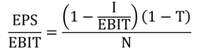 式中,EPS表示每股收益;I表示債務(wù)資金利息;EBIT表示息稅前利潤;T表示企業(yè)所得稅稅率;N表示普通股股數(shù)。