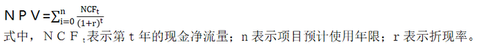 凈現(xiàn)值(NPV:NetPresentValue),是指一個投資項目在項目計算期內(nèi),按設定折現(xiàn)率或基準收益率計算的各年凈現(xiàn)金流量現(xiàn)值的代數(shù)和。計算公式為: