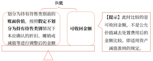 如果價值恢復的,在劃分為持有待售類別后確認的資產(chǎn)減值損失金額內(nèi)轉(zhuǎn)回,轉(zhuǎn)回金額計入當期損益: