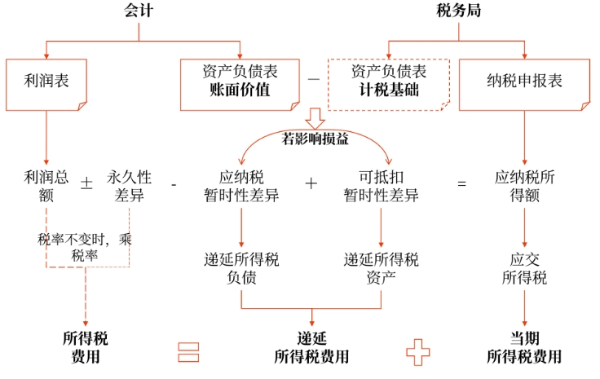 基于收入和費(fèi)用不同所產(chǎn)生的稅會(huì)差異,也一定會(huì)導(dǎo)致相關(guān)資產(chǎn)和負(fù)債賬面價(jià)值與計(jì)稅基礎(chǔ)的差異,根據(jù)會(huì)計(jì)恒等式的原理,兩者是同步變化的。