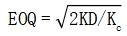 相關(guān)公式 | 存貨年需要量用D來(lái)表示,每次訂貨量用Q來(lái)表示,每次的變動(dòng)訂貨成本用K表示,單位變動(dòng)儲(chǔ)存成本用Kc來(lái)表示,最佳經(jīng)濟(jì)訂貨量用EOQ來(lái)表示 變動(dòng)訂貨成本=訂貨次數(shù)×每次變動(dòng)訂貨成本=D/Q×K 變動(dòng)儲(chǔ)存成本=平均庫(kù)存量×單位變動(dòng)儲(chǔ)存成本=Q/2×Kc 當(dāng)變動(dòng)訂貨成本=變動(dòng)儲(chǔ)存成本時(shí),存貨相關(guān)總成本最小,即:D/Q×K=Q/2×Kc |