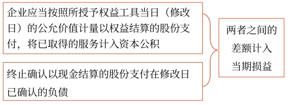企業(yè)修改以現(xiàn)金結(jié)算的股份支付協(xié)議中的條款和條件,使其成為以權(quán)益結(jié)算的股份支付的,在修改日: