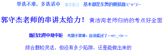 3、考題大多數(shù)在東奧模擬題中出現(xiàn)!認真做過東奧模擬題和有聽考前串講的考生做題時肯定不會有陌生感!