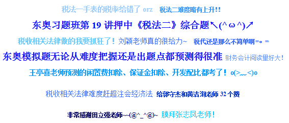 CHIRUINING:法律這科真心被打擊。第一次參加注稅考試,感覺(jué)光背這一科根本沒(méi)有用。和平時(shí)的練習(xí)也差距很遠(yuǎn)。出題老師不按理出牌啊。