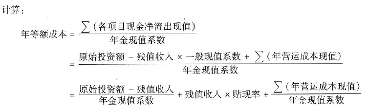 第三,年均成本可在特定條件下(無(wú)所得稅因素、每年?duì)I運(yùn)成本相等),按如下公式計(jì)算