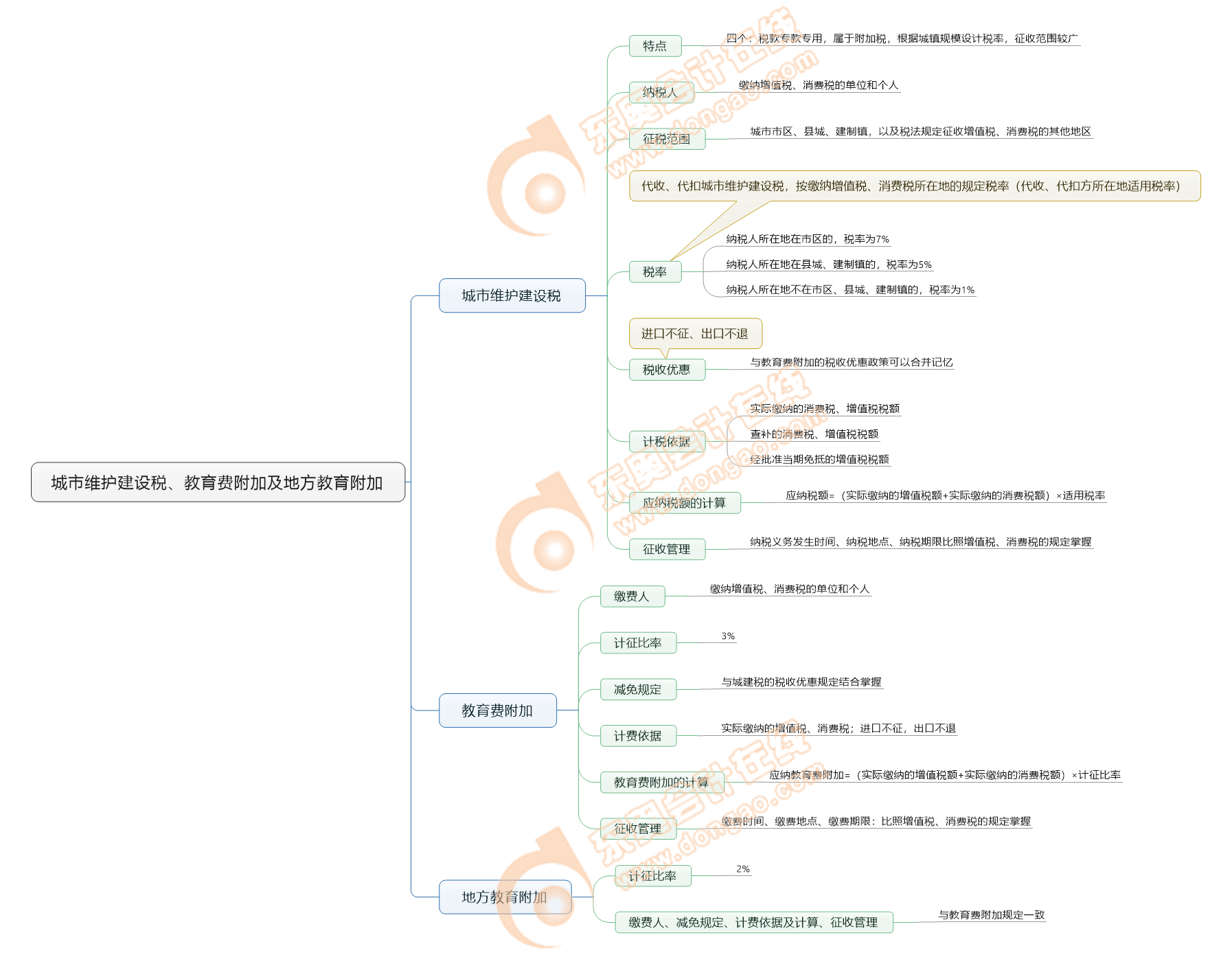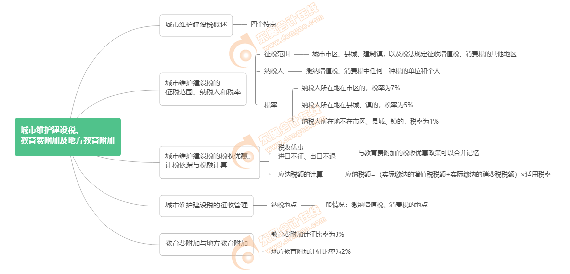 《稅法一》思維導(dǎo)圖:第四章 城市維護(hù)建設(shè)稅、教育費(fèi)附加與地方教育附加