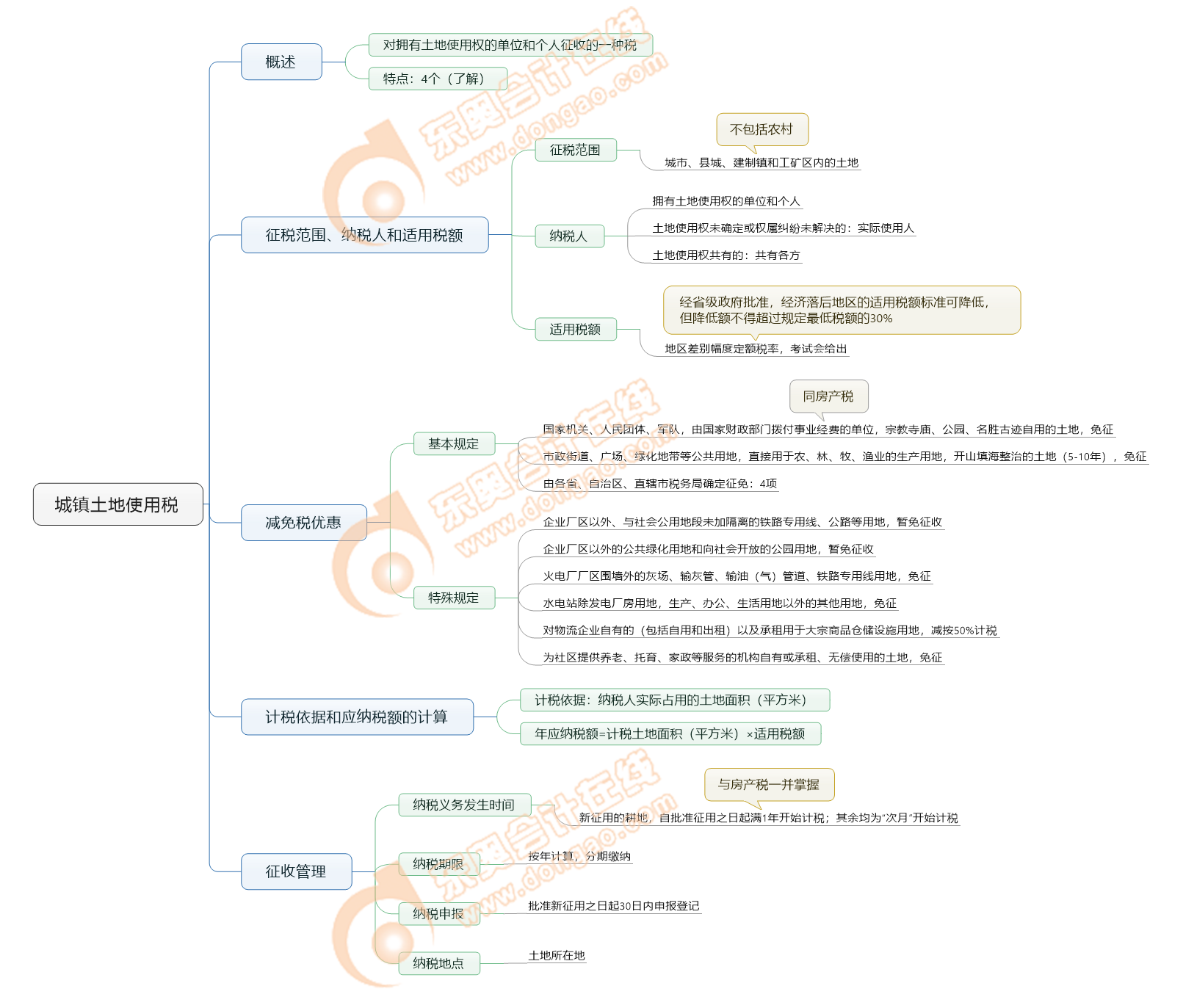 《稅法二》思維導(dǎo)圖:第八章 城鎮(zhèn)土地使用稅
