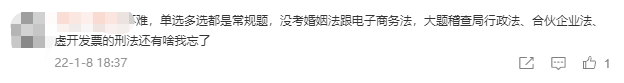 “單選多選都是常規(guī)題,大題稽查局行政法、合伙企業(yè)發(fā)、虛開發(fā)票和刑法......”