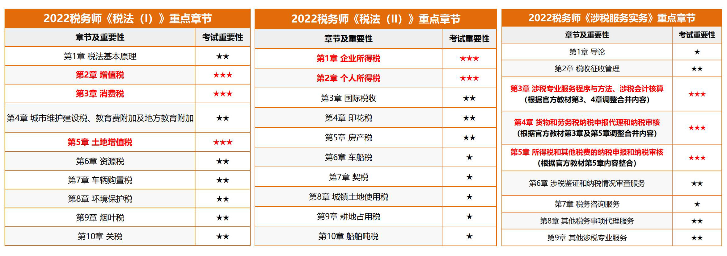 當(dāng)我們學(xué)習(xí)《稅法(I)》內(nèi)容繁多且重要的“增值稅”“消費稅”“土地增值稅”時,可以搭配《稅法(II)》較為簡單輕松的小稅種。另外,由于《涉稅服務(wù)實務(wù)》相關(guān)內(nèi)容與稅務(wù)原理、“增值稅”“消費稅”等章節(jié)關(guān)系緊密,因此也建議此時,連同《涉稅服務(wù)實務(wù)》的1-4章重點章節(jié)展開學(xué)習(xí)。