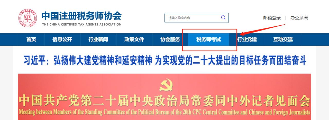 進(jìn)入“中國注冊稅務(wù)師協(xié)會(huì)”官網(wǎng)(https://www.cctaa.cn/),點(diǎn)擊上方導(dǎo)航欄“稅務(wù)師考試”。