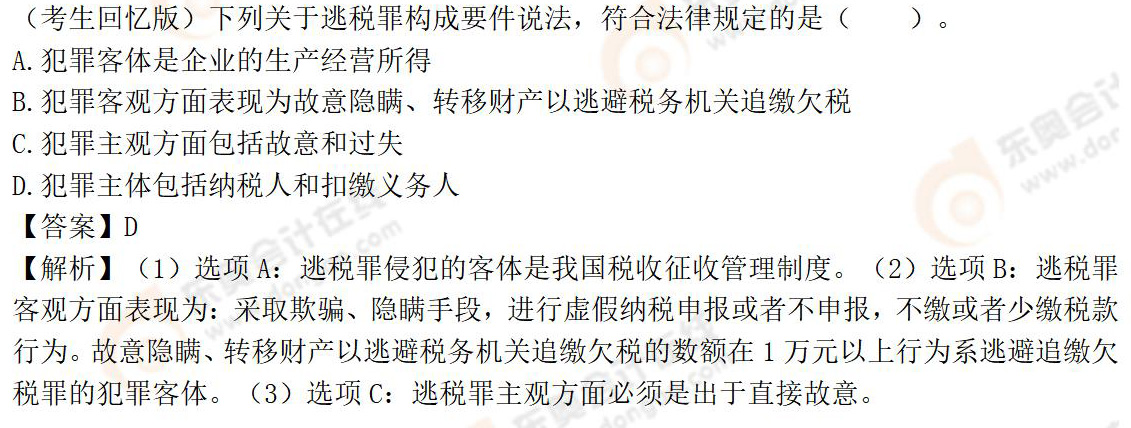 (本文內容由東奧教研團隊提供,東奧會計在線整理發(fā)布)