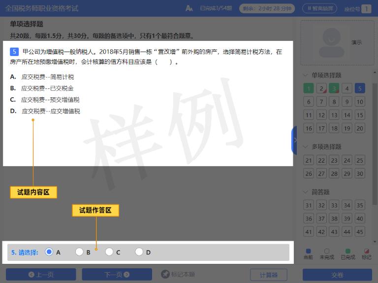 4)在稅務(wù)師考試過程中,如果遇到任何您認為與機考系統(tǒng)軟件、設(shè)備硬件故障相關(guān)的問題,請立即舉手向監(jiān)考人員示意,并在等待解決的過程中保持安靜以免影響其他考生。