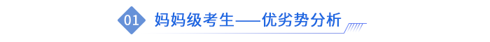 雖然媽媽級考生可以在家里隨心所欲的備考,但其實備考時間并不多。在職媽媽白天還需要上班,全職媽媽也要忙于接送孩子、買菜做飯、整理家務(wù)等一系列瑣事,所以如何利用剩余的時間進行備考,是媽媽級考生需要解決的問題。