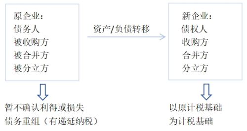 暫不確認有關資產的轉讓所得或損失,按原有計稅基礎確認新資產或負債的計稅基礎