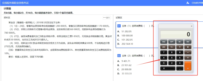 在機(jī)考系統(tǒng)界面中,考生朋友們?cè)谶M(jìn)入答題界面之后,通過點(diǎn)擊“計(jì)算器”字樣,即可打開機(jī)考系統(tǒng)自帶的計(jì)算器。在備考中,考生應(yīng)進(jìn)入機(jī)考模擬系統(tǒng)熟悉計(jì)算器的各項(xiàng)功能,確保能夠在考試中準(zhǔn)確、高效地完成計(jì)算。