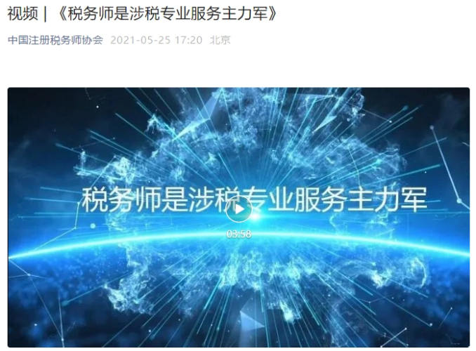 2021年,中稅協(xié)發(fā)布了《稅務(wù)師是涉稅專業(yè)服務(wù)主力軍》視頻,介紹稅務(wù)師考試的由來、稅務(wù)師發(fā)展前景等等,視頻中強(qiáng)調(diào):稅務(wù)師是涉稅專業(yè)服務(wù)主力軍。
