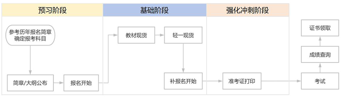 從報名到考試,考生大約有半年左右的時間可用于備考學(xué)習(xí)。如考生在預(yù)習(xí)階段即開始搶學(xué),則備考時間會更加充裕。