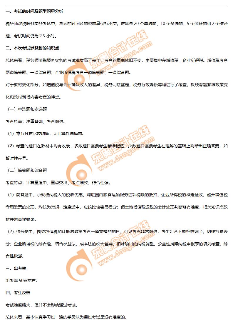 2021年稅務師延考涉稅服務實務考情分析及考點分布_考生回憶版
