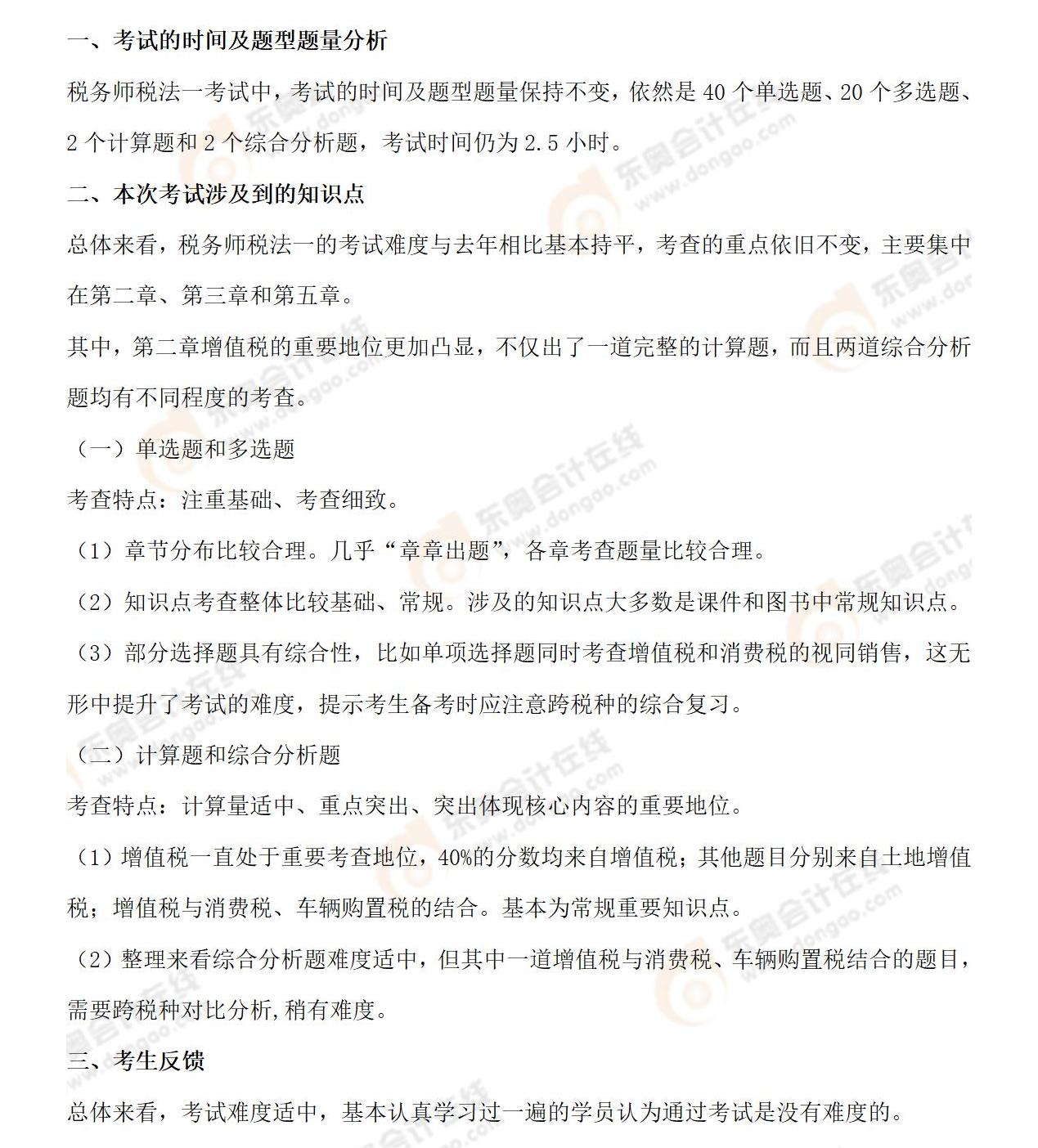 2022年稅務(wù)師二次延考稅法一考情及考點(diǎn)分析_考生回憶版