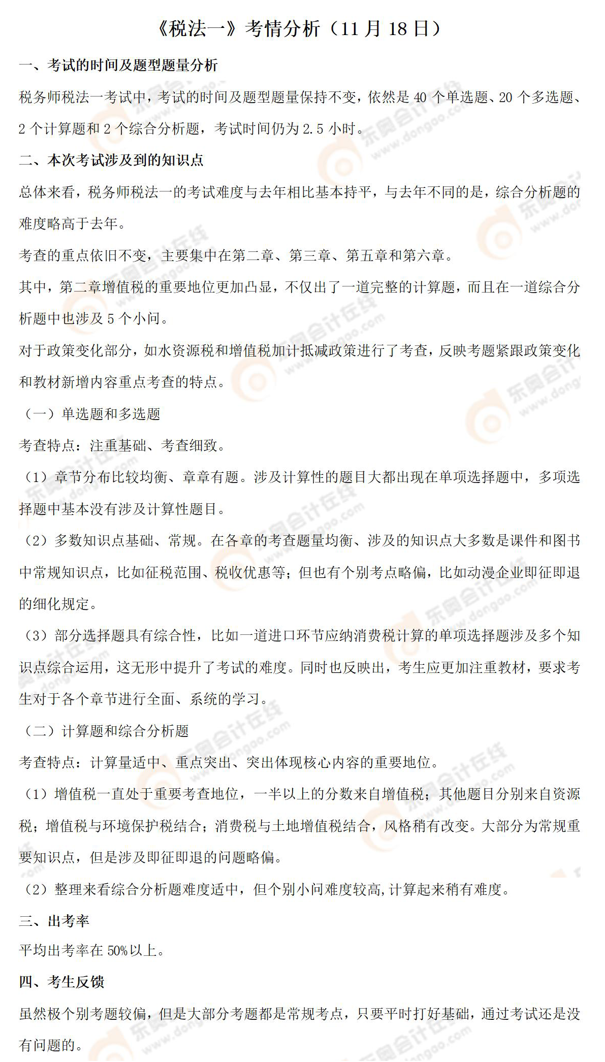 2023年稅務師考試稅法一考情及考點分析_考生回憶版