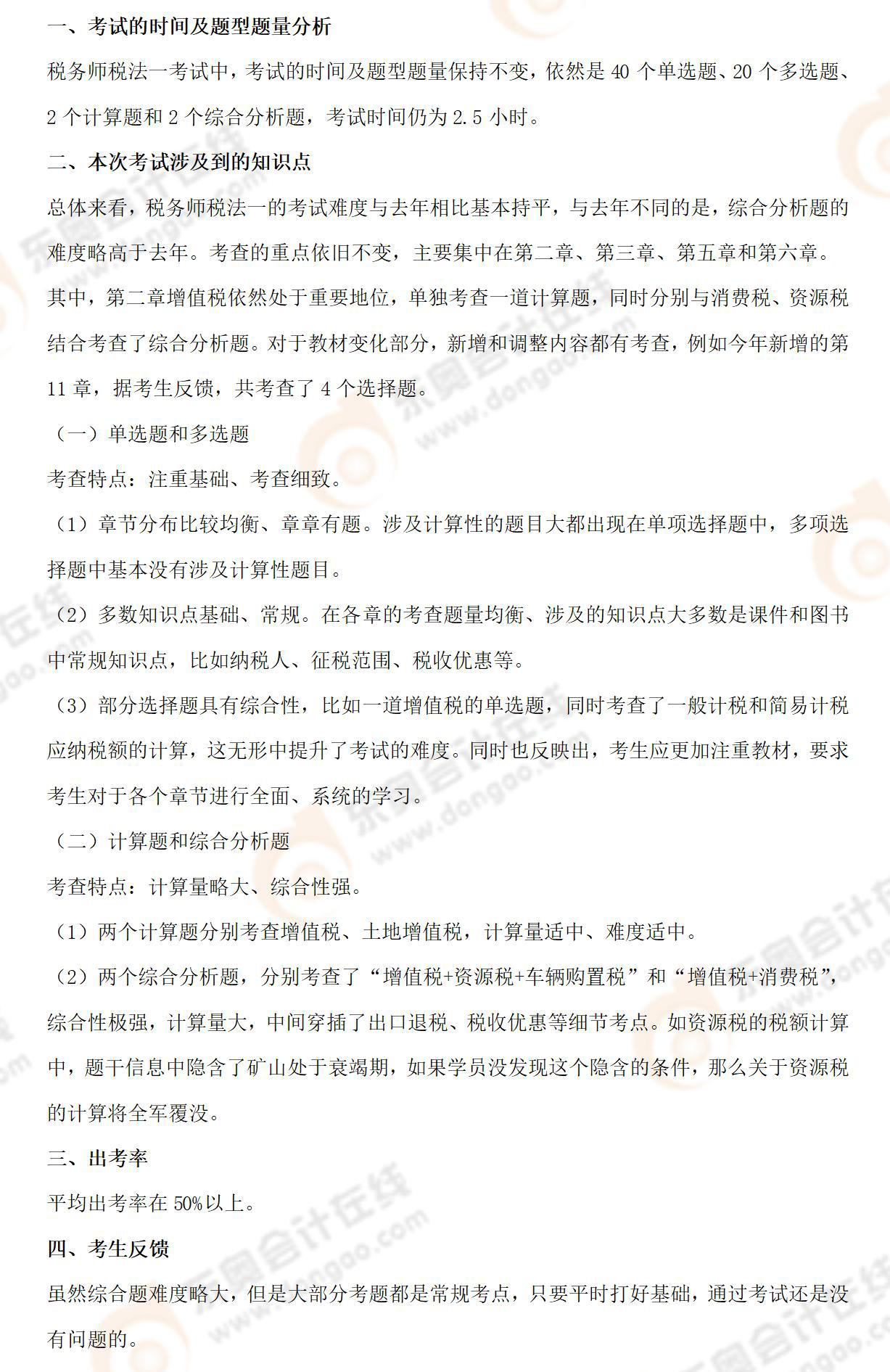 2024年稅務(wù)師考試稅法一考情及考點(diǎn)分析_考生回憶版