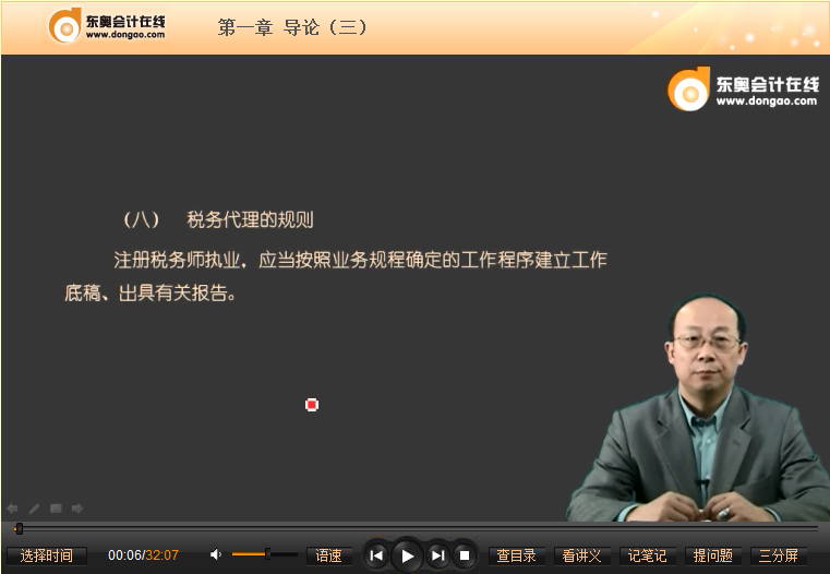 以下是東奧名師李文2013年注冊稅務師考試基礎班免費課件:《稅務代理實務》之圖解稅務代理的規(guī)則試聽課程: