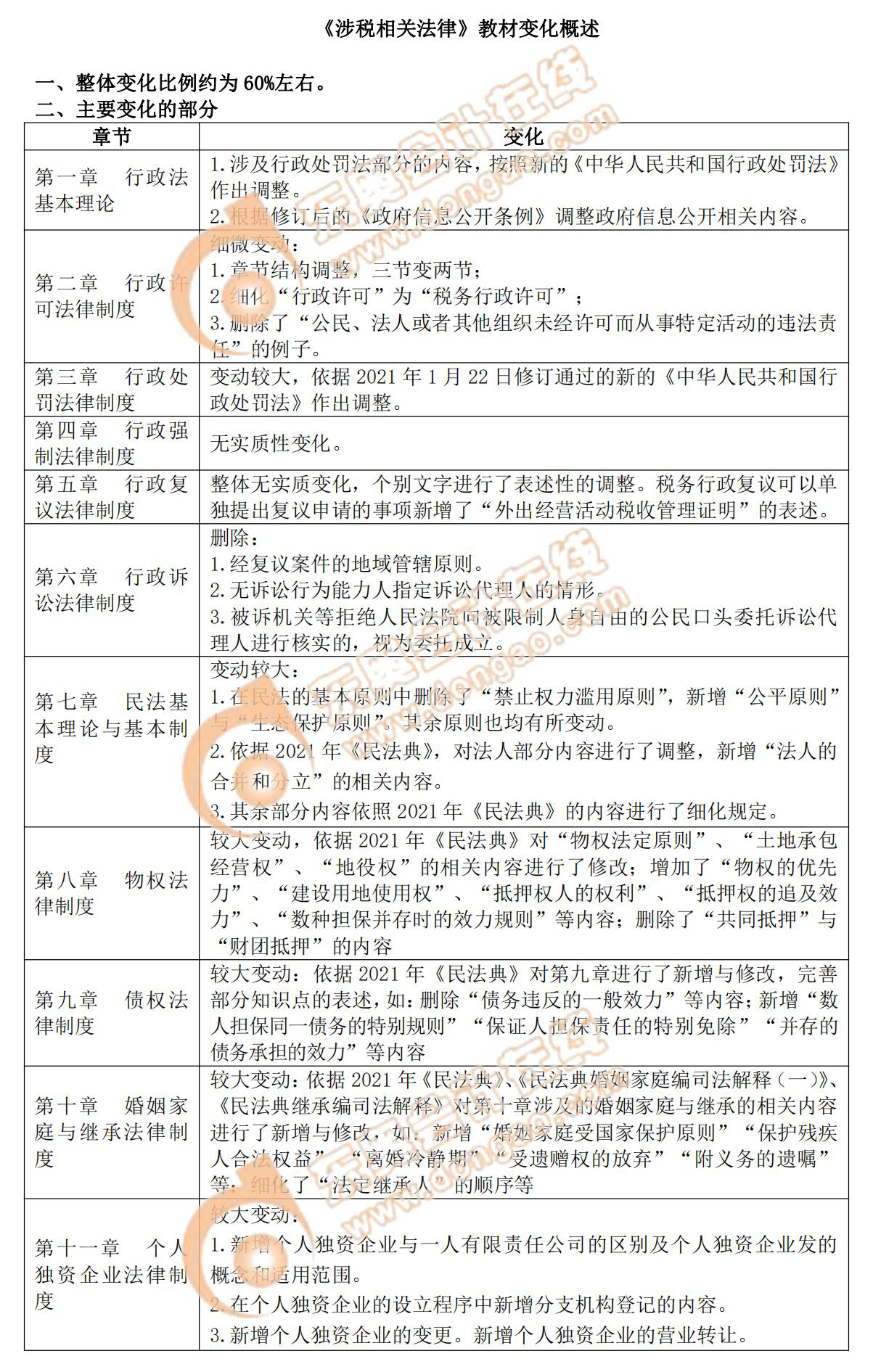 2021年稅務(wù)師《涉稅服務(wù)相關(guān)法律》教材變化