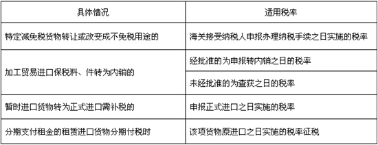 3.進出口貨物的補稅和退稅,適用該進出口貨物原申報進口或者出口之日所實施的稅率,但特例情況根據(jù)關稅條例規(guī)定如下: