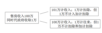 3.代縣以上政府收取的費用,均不得加計扣除。具體情況為——計入收入的也可進行扣除,但不得加計20%扣除;未計入收入的不得計入扣除,更不能加計扣除。