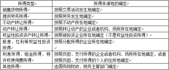 3.所得來源地的確定(客觀題考點)