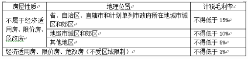 4.企業(yè)銷售未完工開發(fā)產(chǎn)品(即指期房)的計稅毛利率由各省、自治、直轄市國家稅務(wù)局、地方稅務(wù)局按下列規(guī)定進(jìn)行確定:(一看房屋性質(zhì),二看房屋區(qū)域)