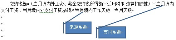 應(yīng)納稅額=(當(dāng)月境內(nèi)外工資、薪金應(yīng)納稅所得額×適用稅率-速算扣除數(shù))×(1-當(dāng)月境外支付工資÷當(dāng)月境內(nèi)外支付工資總額×當(dāng)月境外工作天數(shù)÷當(dāng)月天數(shù))