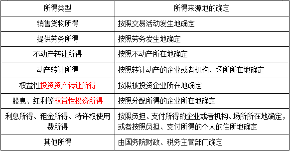 所得來源地的確定(客觀題考點):